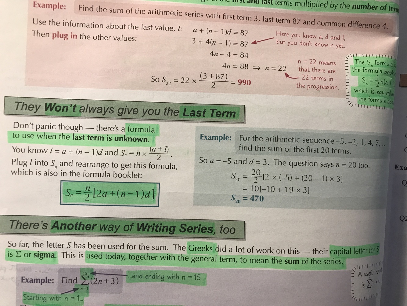 what is the formula used to find Sn? This is given in the exam. What is the formula doing in words?