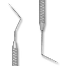 “paddle” end (for placement of materials such as temporary restorations) and a “plugger” end (for removal or condensation of gutta-percha)