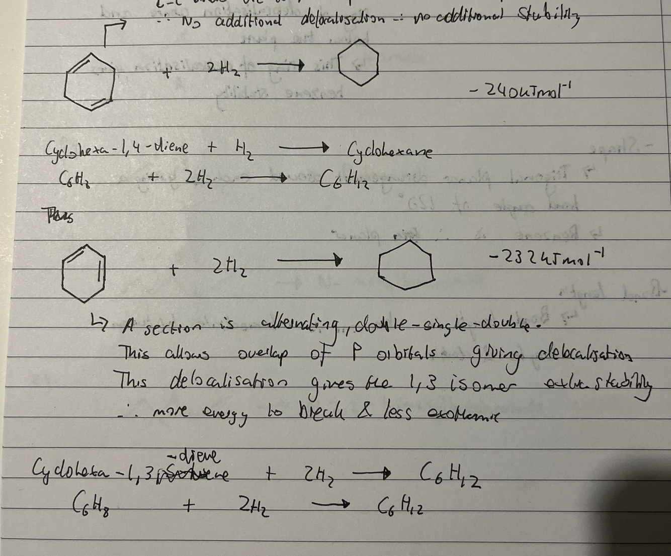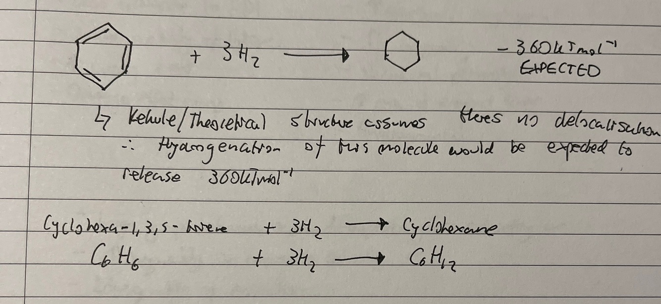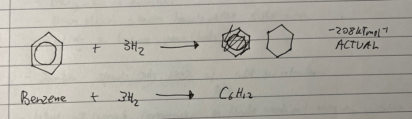 Hydrogenation of benzene is 152KJmol-1 less exothermic than the theoretical molecule