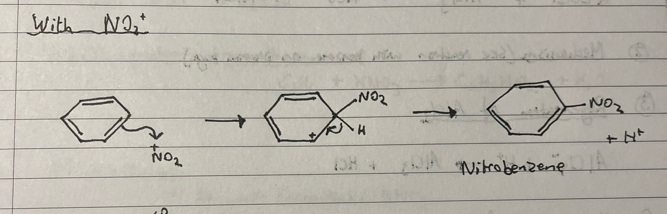 What are the 2 electrophiles which can react with benzene in electrophilic substitution