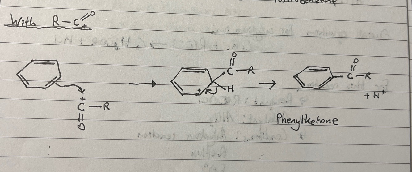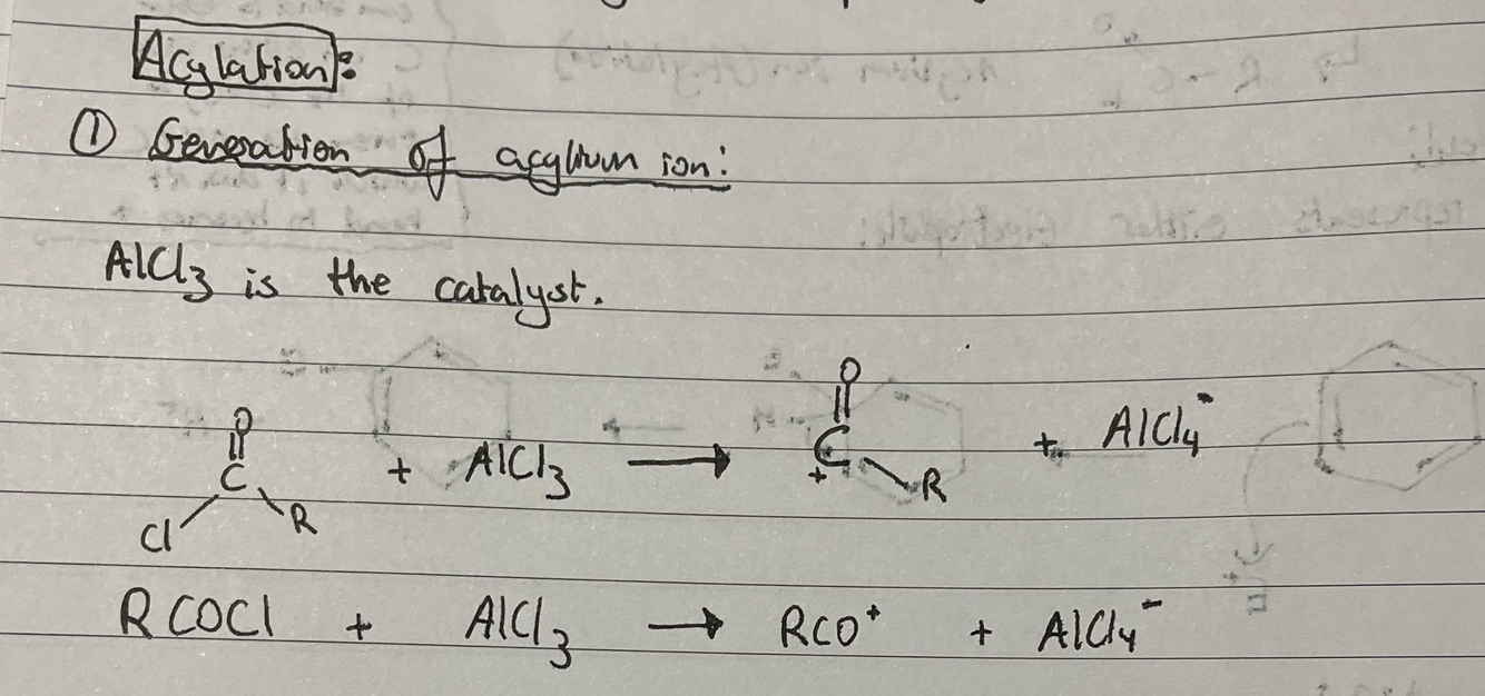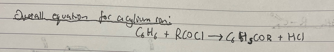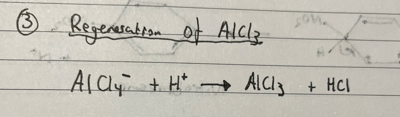 Write an equation for the regeneration of the catalyst used in the acylation of benzene