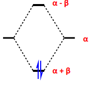 α - coulomb integral which is E of an e- in an isolated 2p orbital, this is a stabilising as negative
