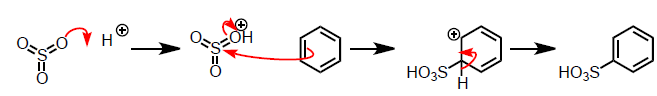 What is sulfonation mechanism of benzene at standard T?