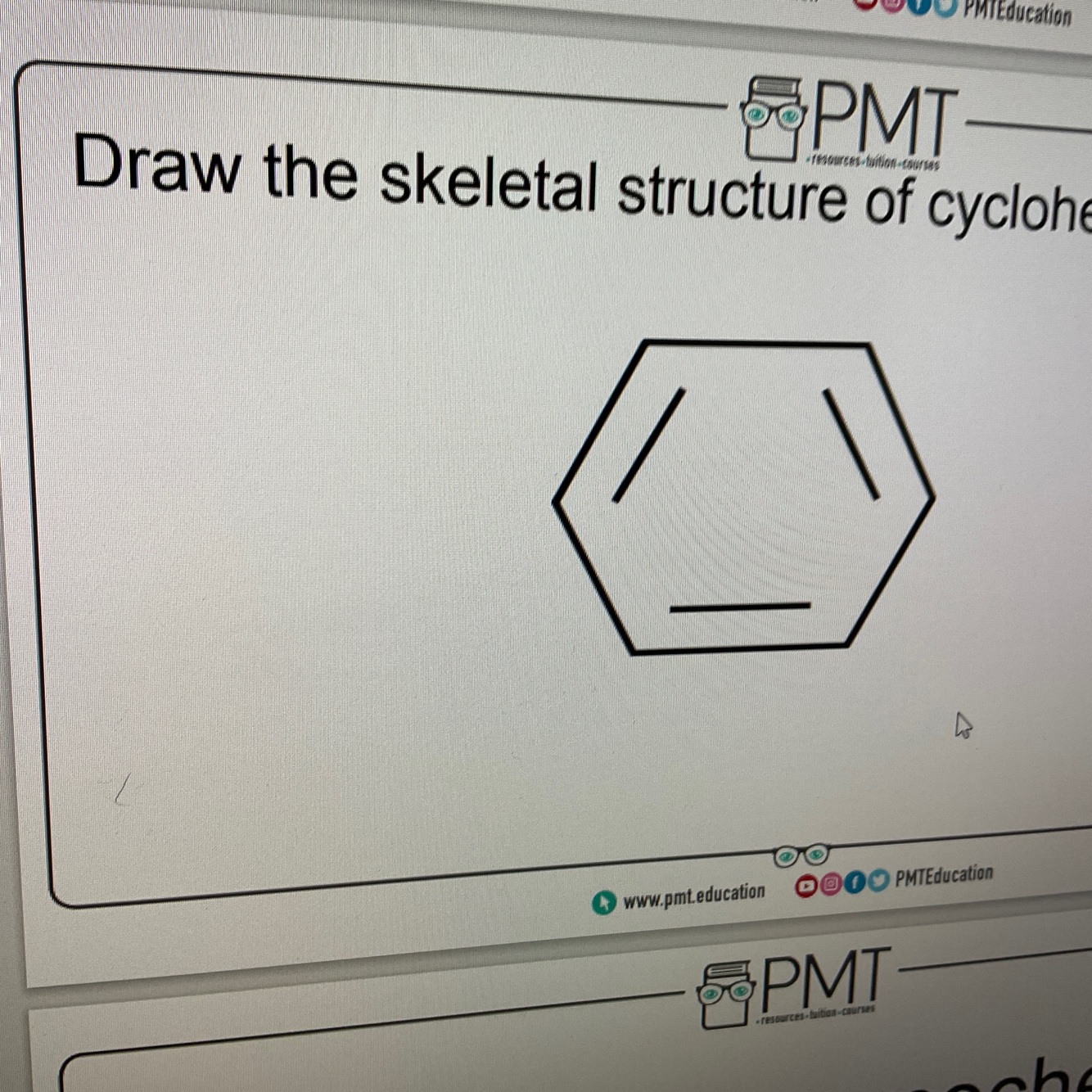 Draw the skeletal structure of cyclohexa-1,3,5-triene