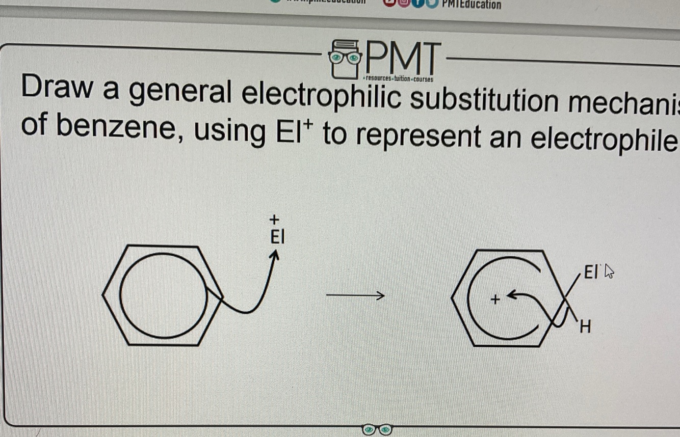 Draw a general electrophilic substitution mechanism, for benzene.