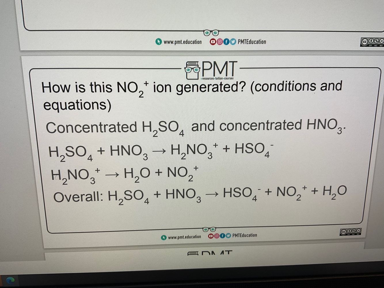 Write the equations for the formation of the the nitronium ion to react with benzene to nitrobenzene