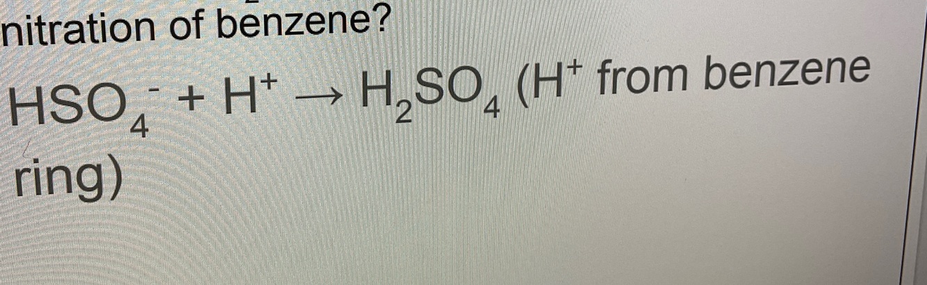 Which ion (namer and formula) is used to nitrate benzene>