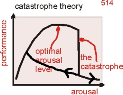 The theory, hypotheses that when arousal levels go too high, there can be a sudden, or a catastrophic drop in performance.