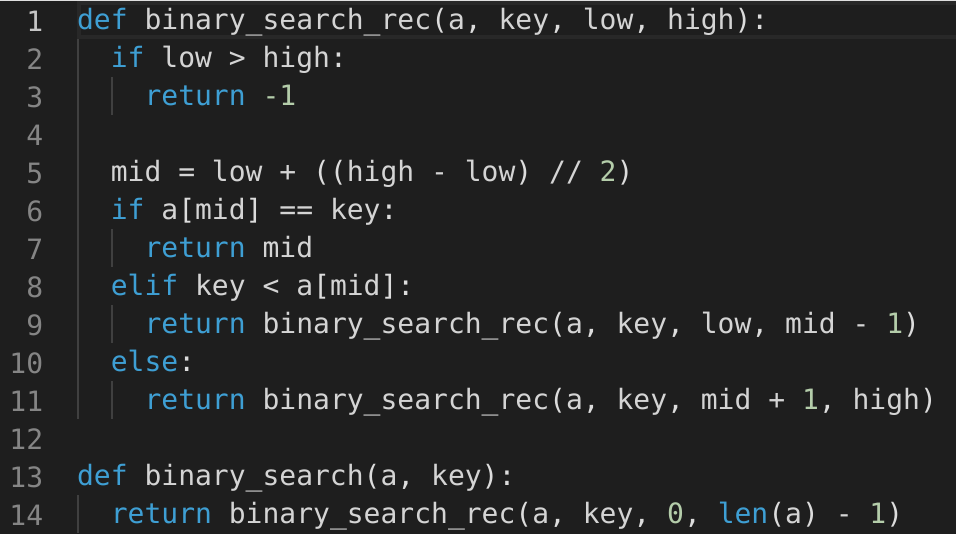 Similarly, we can find the high index by slightly modifying the above condition to switch low index to mid+1 when element at mid index is less than or equal to the key and to switch the high index to mid-1 when element at mid is greater than the key.