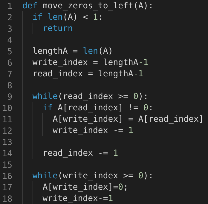 We will keep two markers (read_index and write_index) and point them to the end of the array. Here is an overview of the algorithm.