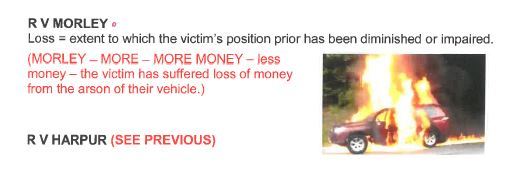 (Morley - More - More Money - less money - the victim has suffered loss of money from the arson of their vehicle)