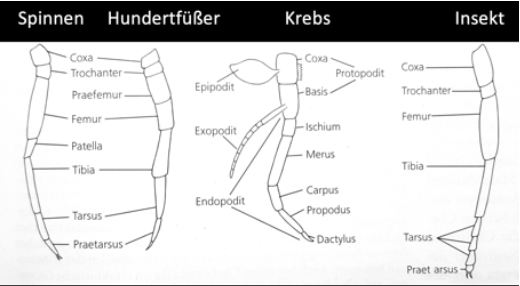 Beinglieder (mit Terminologie) der Spinnentiere, Insekten und Krebse
