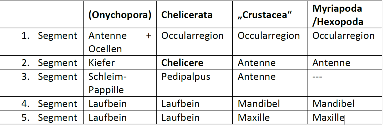 Extremitäten, Kopfanhänge, Besonderheiten und der Gruppen innerhalb der Arthropoda (siehe auch Dokument „Apomorphien Ecdysozoa“)