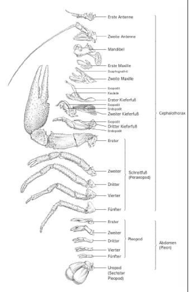 Tagmata/Segmente/Körperanhänge/Extremitäten eines decapoden Krebses kennen