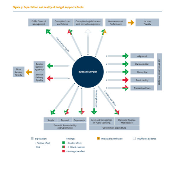 Most proven effects of budget support are positive or at least in presence of certain context factors positive: a high number and quality of donors’ common interests and the adherence of partner governments to the conditionalities.
