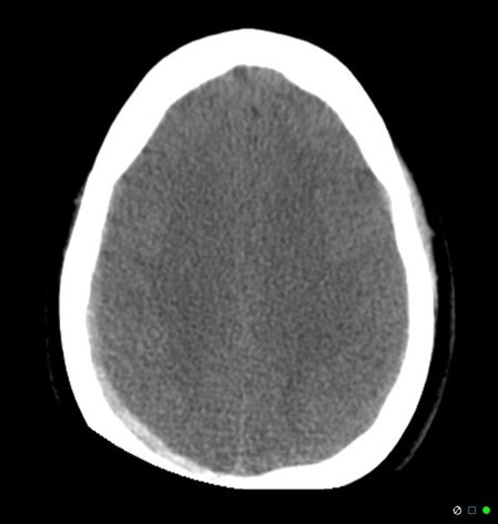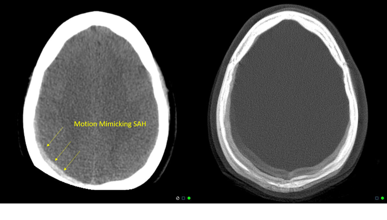 When anatomy or anything else somewhat dense (IV bags, monitoring equipment) is outside the scan FOV, it will only be seen by the scanner on some projections (incomplete projection artifact) and cause errors in the reconstruction, resulting in streaking. The geometry of the streak artifact converges outside the FOV and not at the calvarium and thus cannot be beam hardening artifact, which would be more pronounced at lower kVp settings.