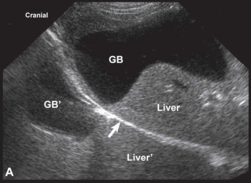 Electronic noise artifact: Stray electric signal from electric equipment such as lights, clippers, and electrocautery units may cause artifacts to appear that remain when the transducer is not in contact with the animal.