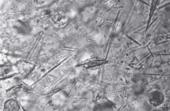 Características inflamatórias contendo cristais típicos com birrefrigência negativa