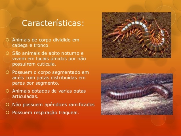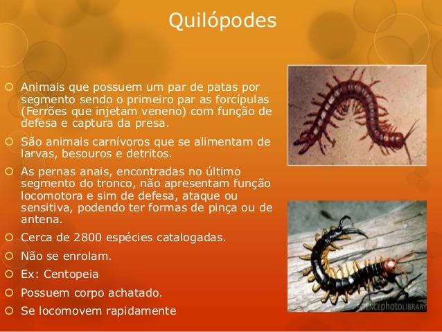 obs. miriápodes - superclasse dos artrópodes com muitas patas (cabeça e corpo segmentado em anéis).