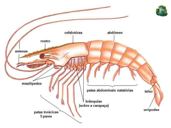 obs. Assim como os aracnídeos, tem o cefalotórax, além de 10 (decápodes) ou 8 patas (havendo 8 patas, sua diferença com os aracnídeos são as 4 antenas).