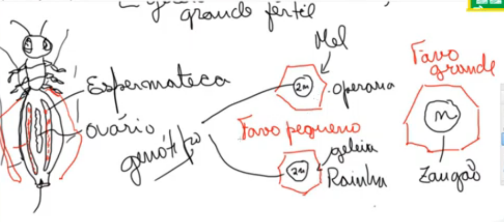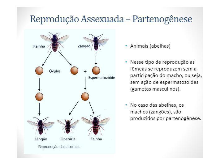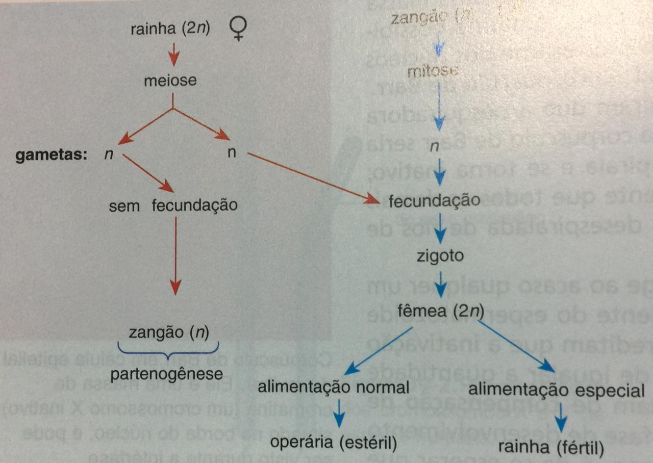 obs. Os machos das abelhas, vespas e formigas surgem pela partenogênese de óvulos não fecundados, portanto são haplóides, enquanto as fêmeas são diplóides.