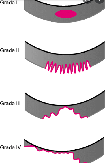 Geef de verschillende gradaties van kraakbeendegeneratie?
