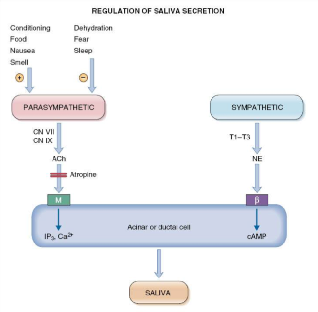 Sympathetic + parasympathetic stimulate salivary secretion