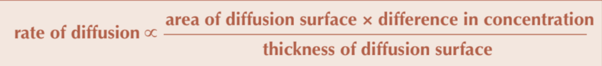 This means that diffusion rate will double if surface area or concentration gradient increases/diffusion pathway halves