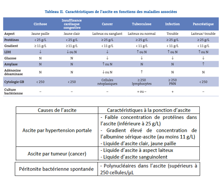 Connaître les diagnostics les plus probables en fonction des résultats à la ponction d’ascite