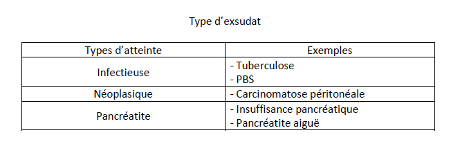 Quelles sont les causes d’ascite par exsudat?