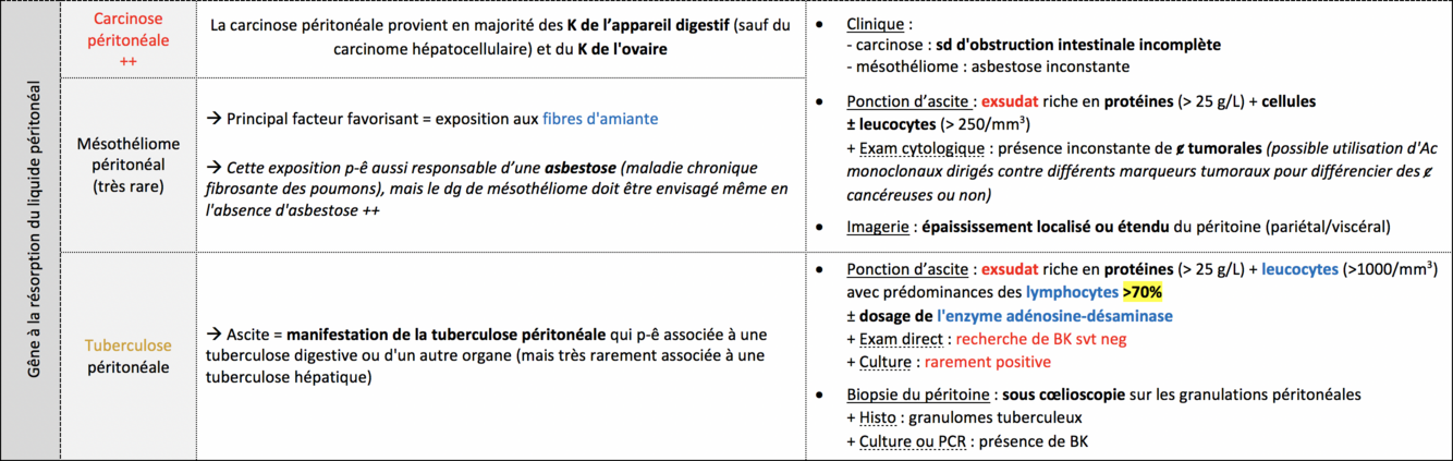 Caractéristiques des ascites dues à la gêne à la résorption du liquide péritonéal