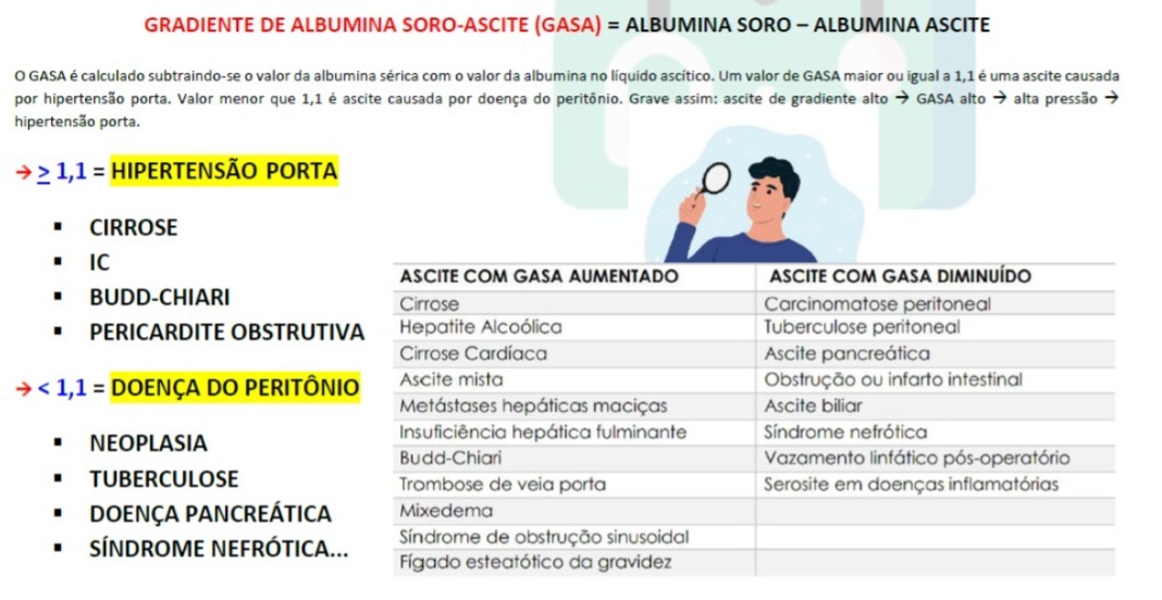 - SE PARACENTESE DE GRANDE VOLUME (> 5 LITROS): REPOR 6-8G DE ALBUMINA POR LITRO RETIRADO (!!!)-para evitar síndrome hepatorrenal