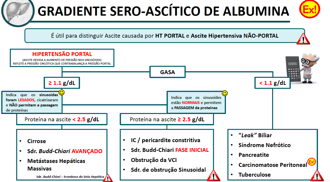 A cirrose caracteriza-se por apresentar um gradiente de albumina soro-ascite ≥1,1 g/dL e um nível de proteínas no líquido ascítico …….