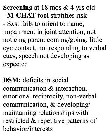 Describe the screening & diagnosis of ASD