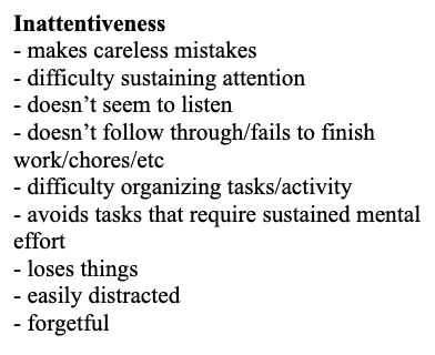 Describe the presentation of inattentiveness ADHD
