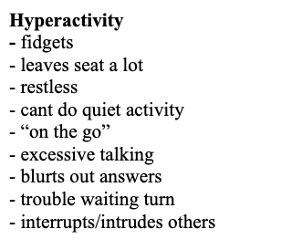 Describe the presentation of hyperactivity ADHD