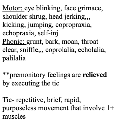 Describe the presentation of tourette syndrome