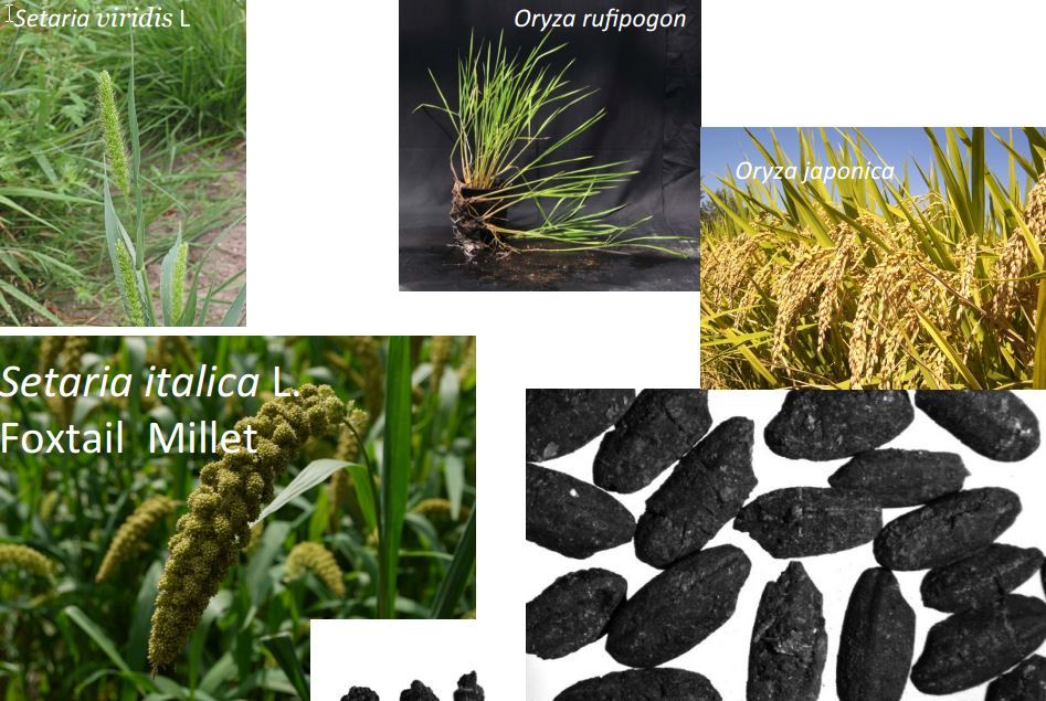 Plant domestication was independently invented. In China this focused on rice and millet, the remains of which are occasionally found today, preserved through arid conditions.