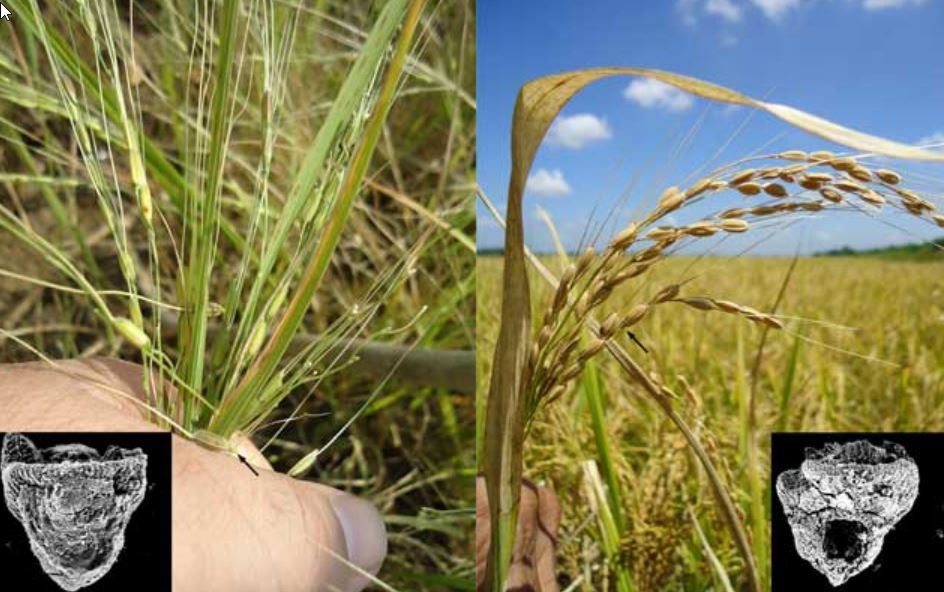 Wild rice and domesticated rice, and characteris*c spikelets, recovered from flota*on