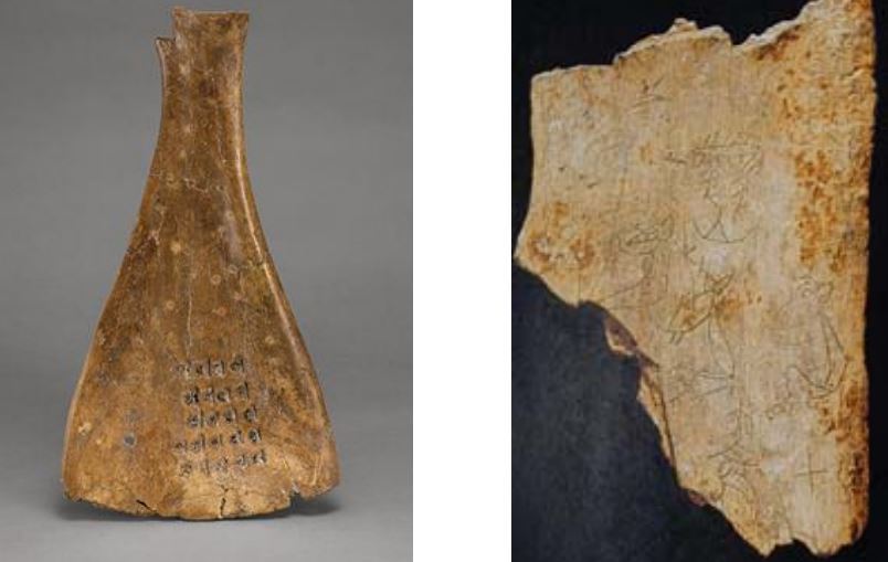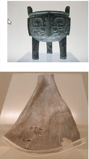 Inscribed ox scapula (c. 1200 BC) and Oracle-bone inscription (c. 1200 BC) showing early chinese characters