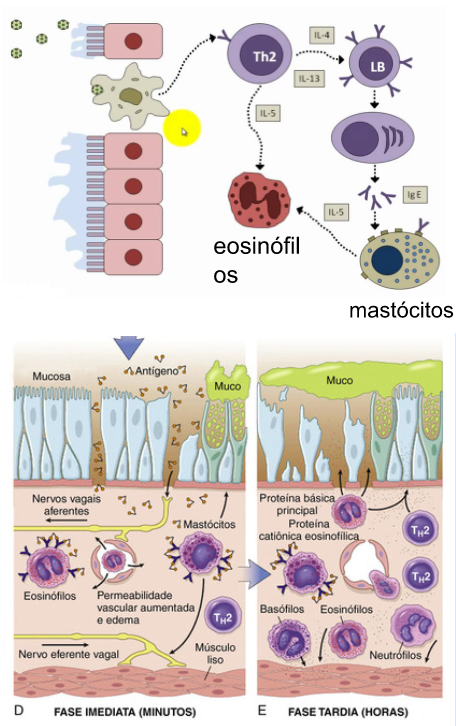 Nos Mastócitos têm citocinas ( IL-5) que irão recrutar os eosinófilos para ativação e liberação de grânulos e mediadores - caracterizando a fase tardia.