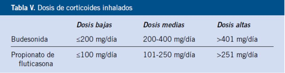Dose alta de corticoide (budesonida > 800 µg/dia);