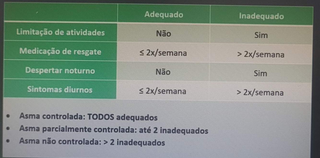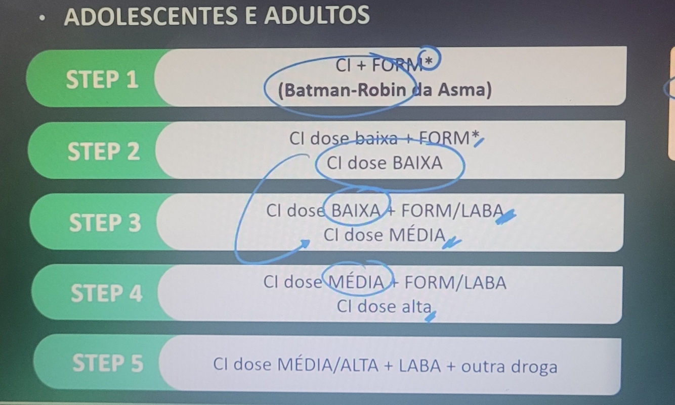 6 aos 11 anos igual aos adolescentes e adultos ( CI dose baixa + LABA OU apenas CI dose média)