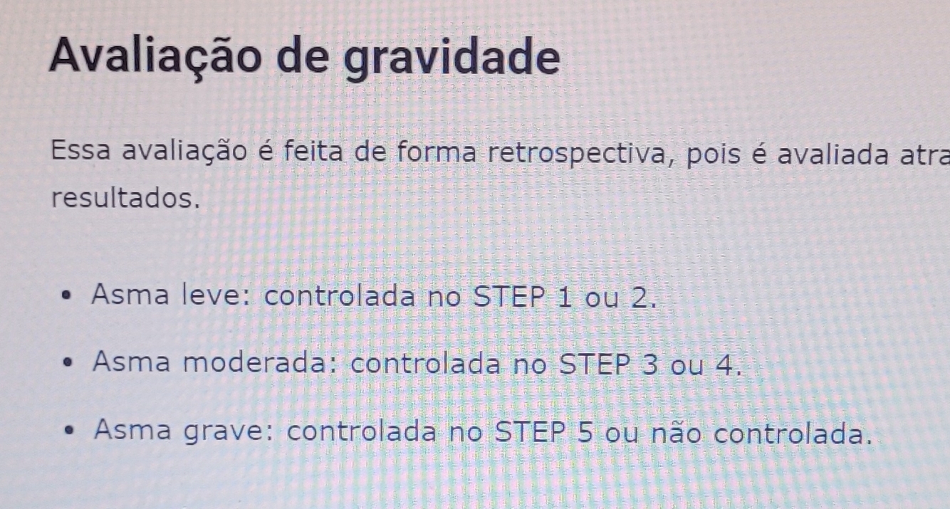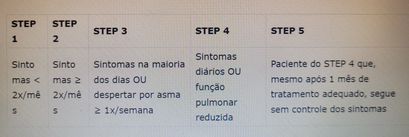 Qual a avaliação da gravidade da asma de acorco com os STEPS?
