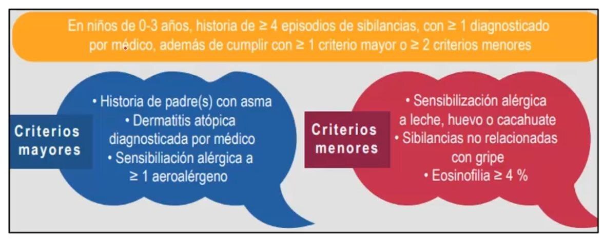 Historia de >=4 episodios de sibilancias con >=1 diagnosticado por médico, además de cumplir con criterio mayor o 2 criterios menores