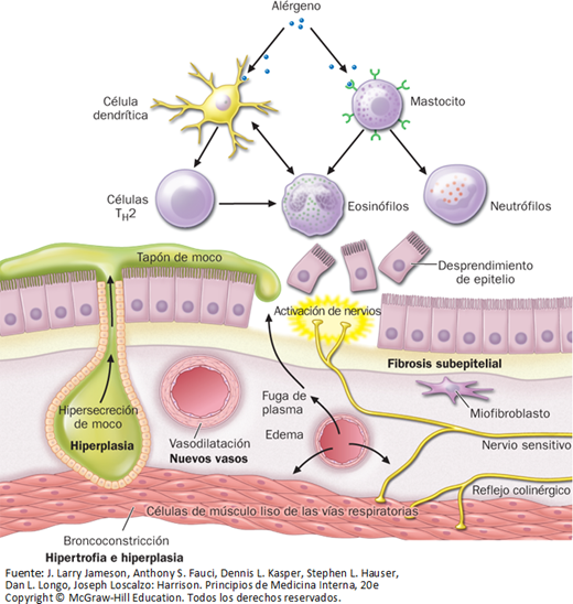Describe la fisiopatología de asma
