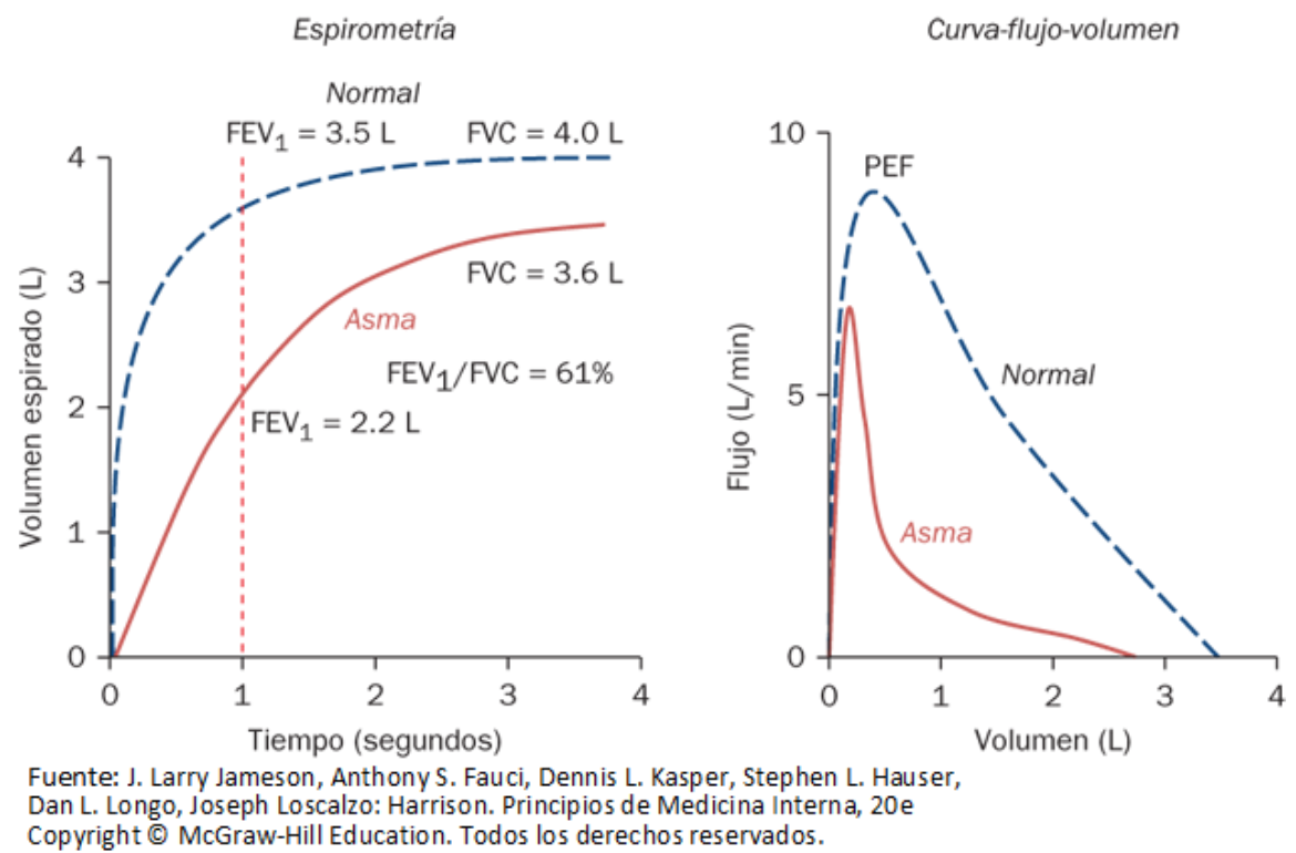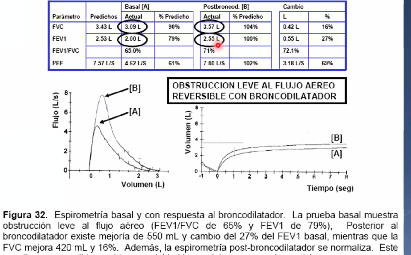 ¿Cuales son las características espirométricas de asma?