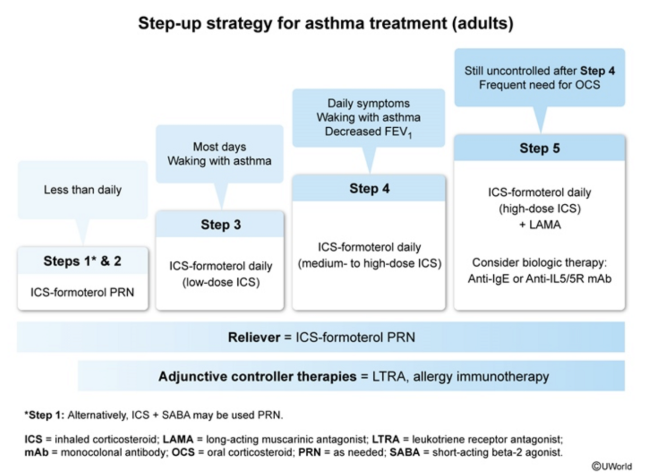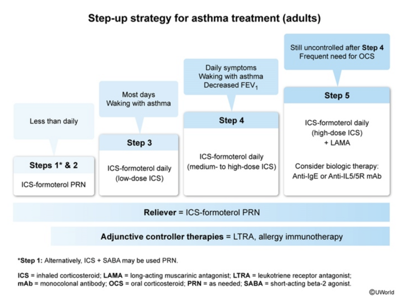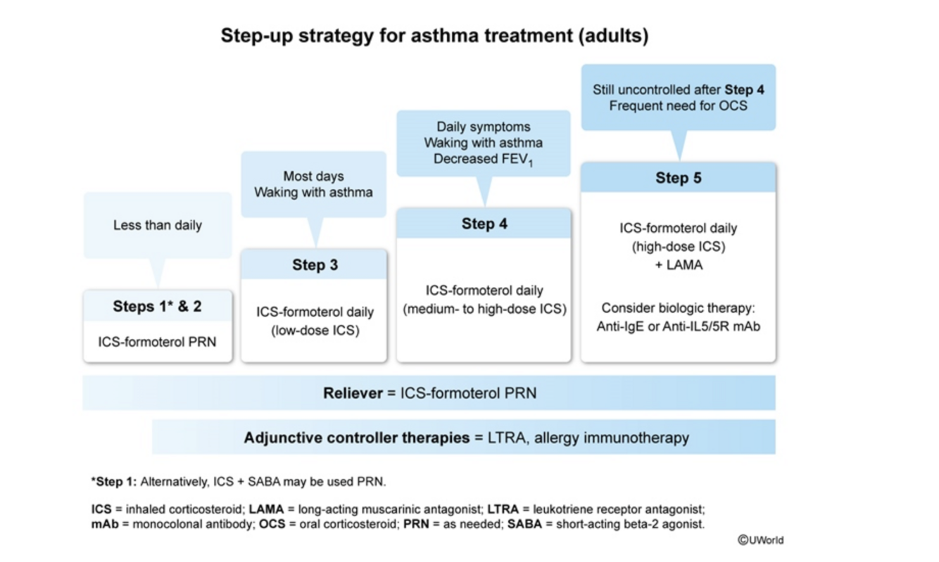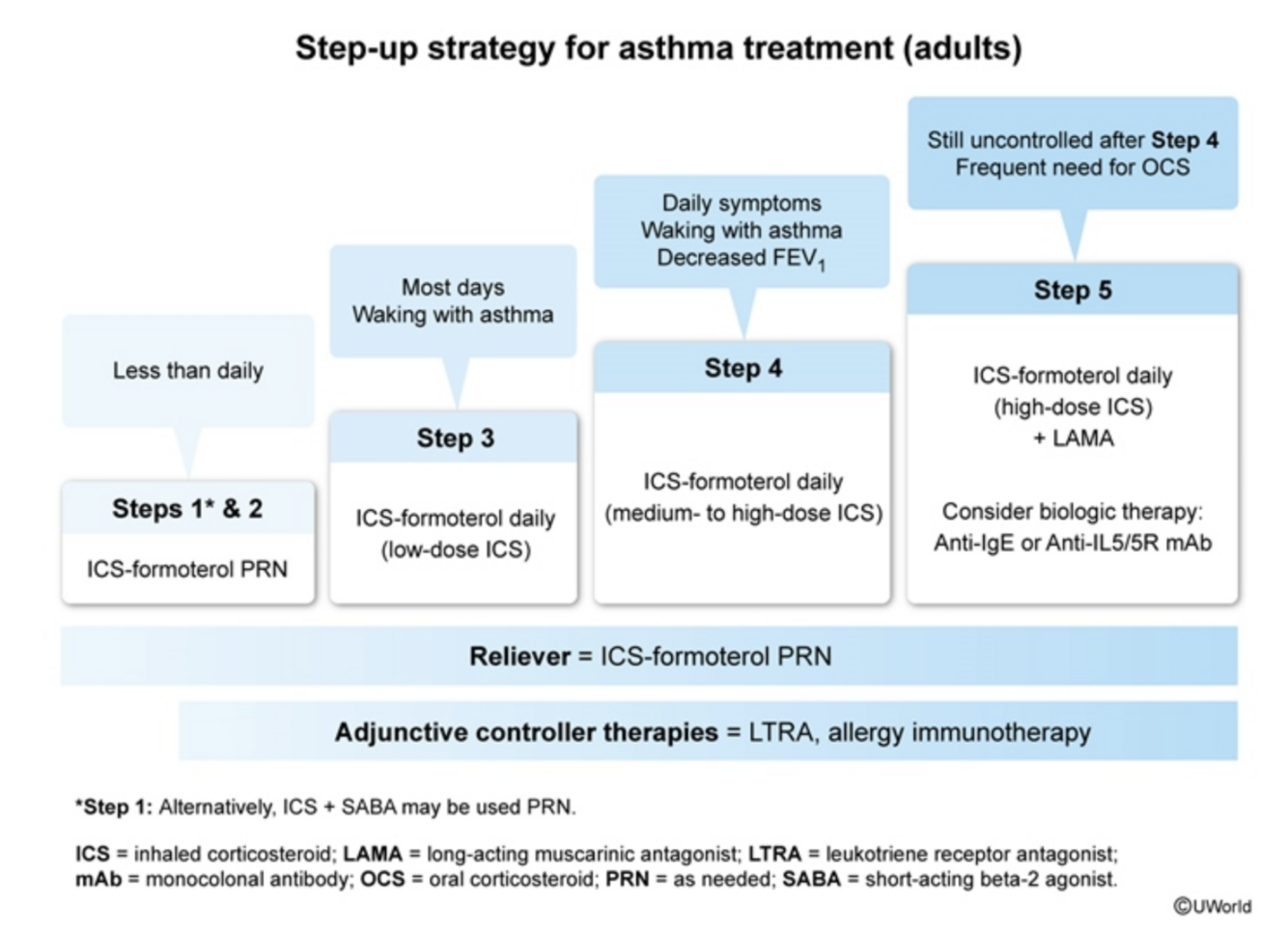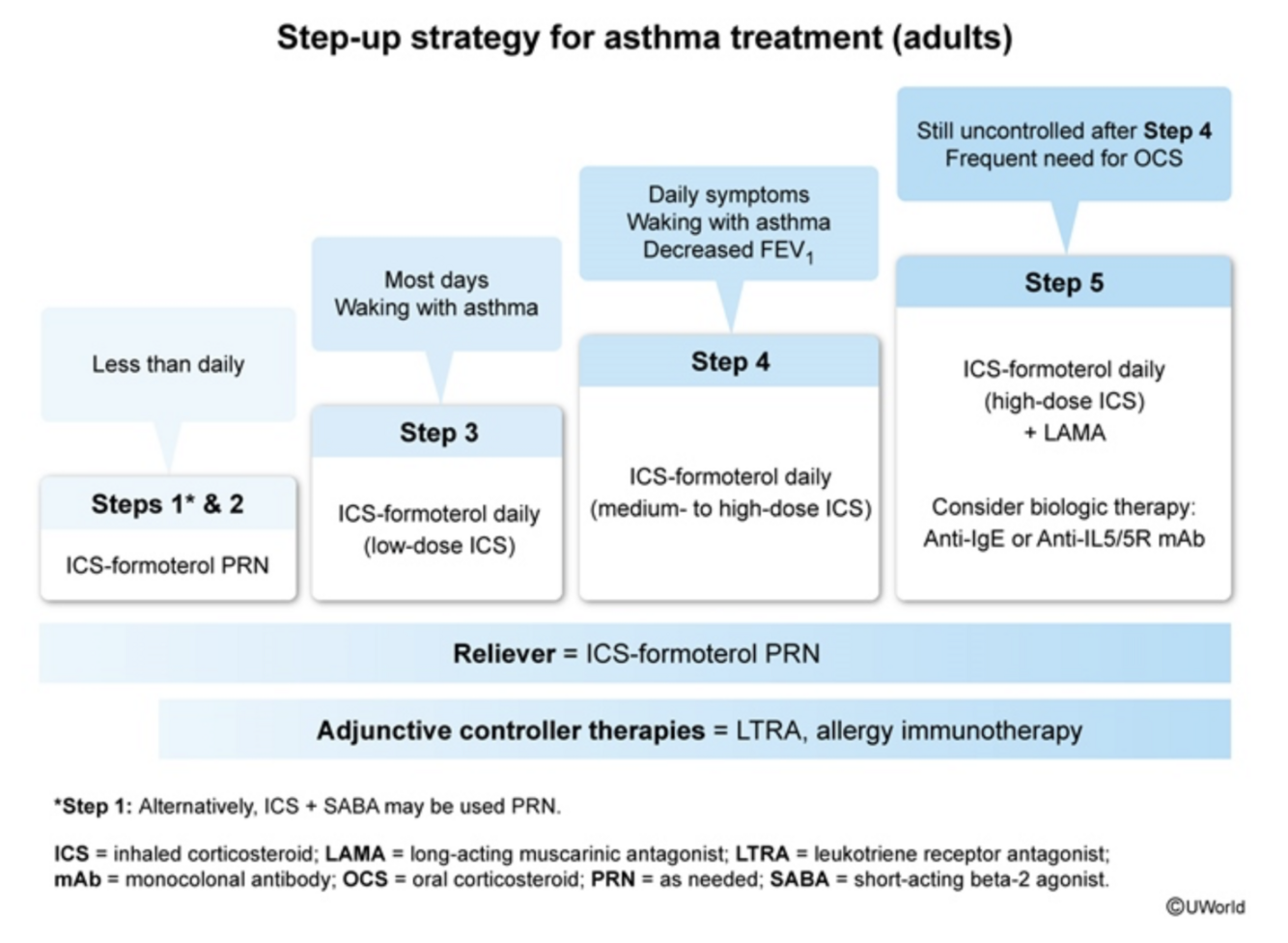 Short-acting beta-agonist (SABA) such as albuterol as needed.