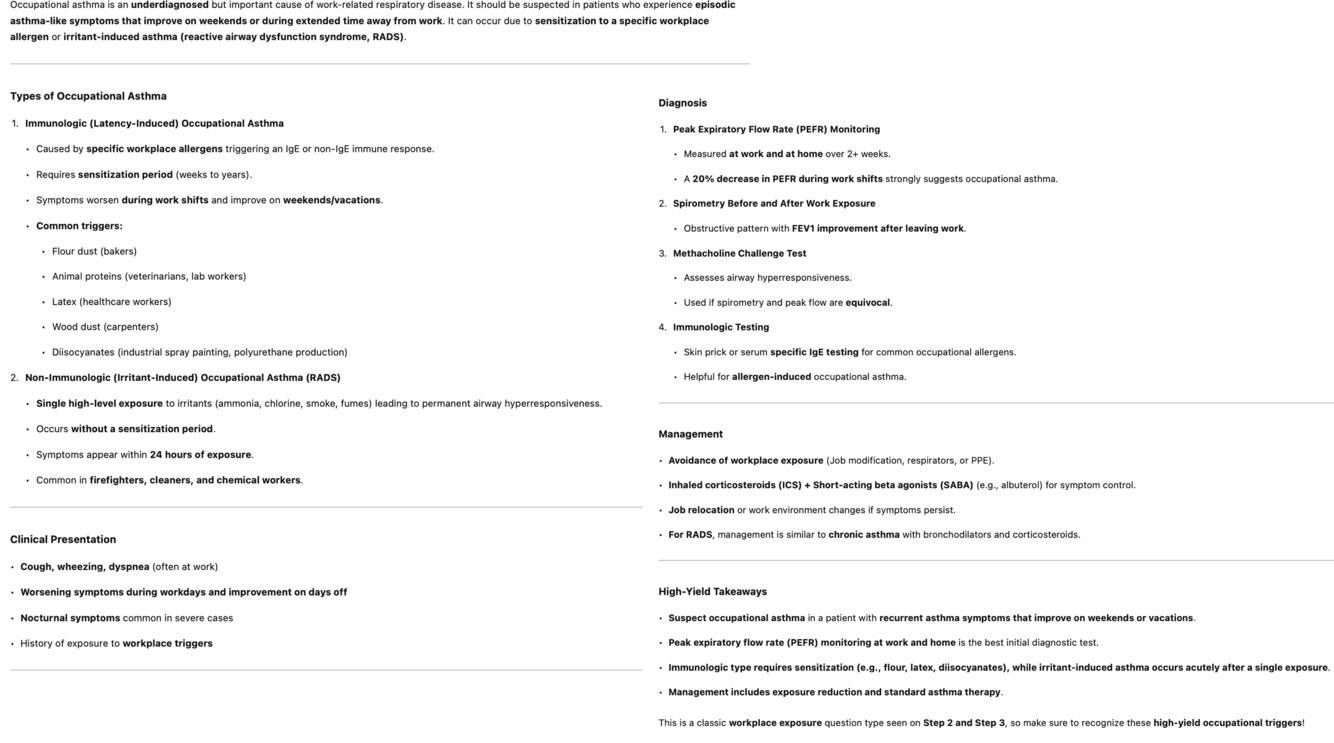Methacholine challenge or exercise challenge testing or exercise challenge. There can occasionally be a diagnosis established due to “workplace exposure.”