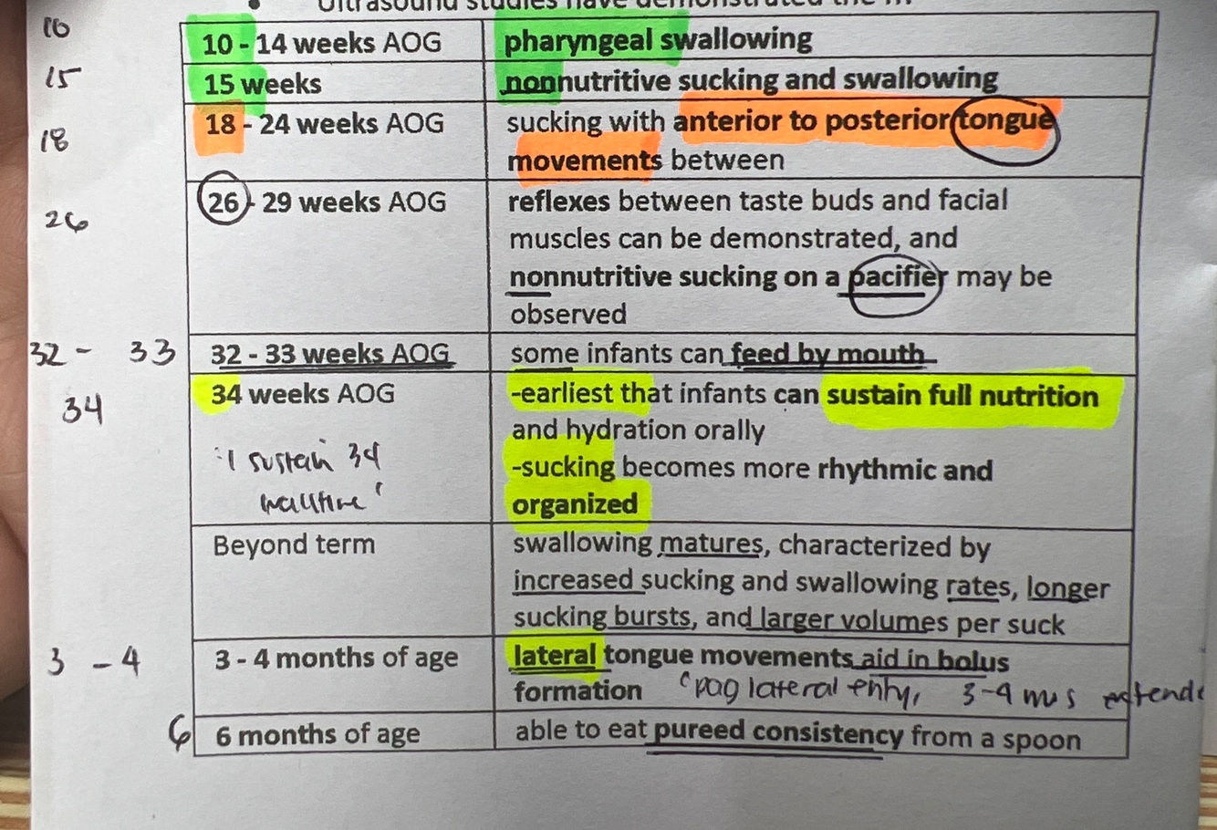 pharyngeal swallowing occurs duting _______ weeks age of gestation
